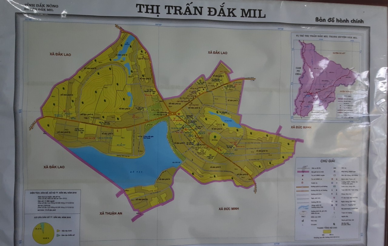 Thị trấn Đắk Mil có diện tích 4,82 km², có 10 Tổ Dân phố với dân số năm 2019 là 11.487 người. Thị trấn Đắk Mil được thành lập ngày 19 tháng 8 năm 1989. Được công nhận là đô thị loại IV tại Quyết định 1534/QĐ-BXD của Bộ Xây dựng ngày 25 tháng 12 năm 2014.