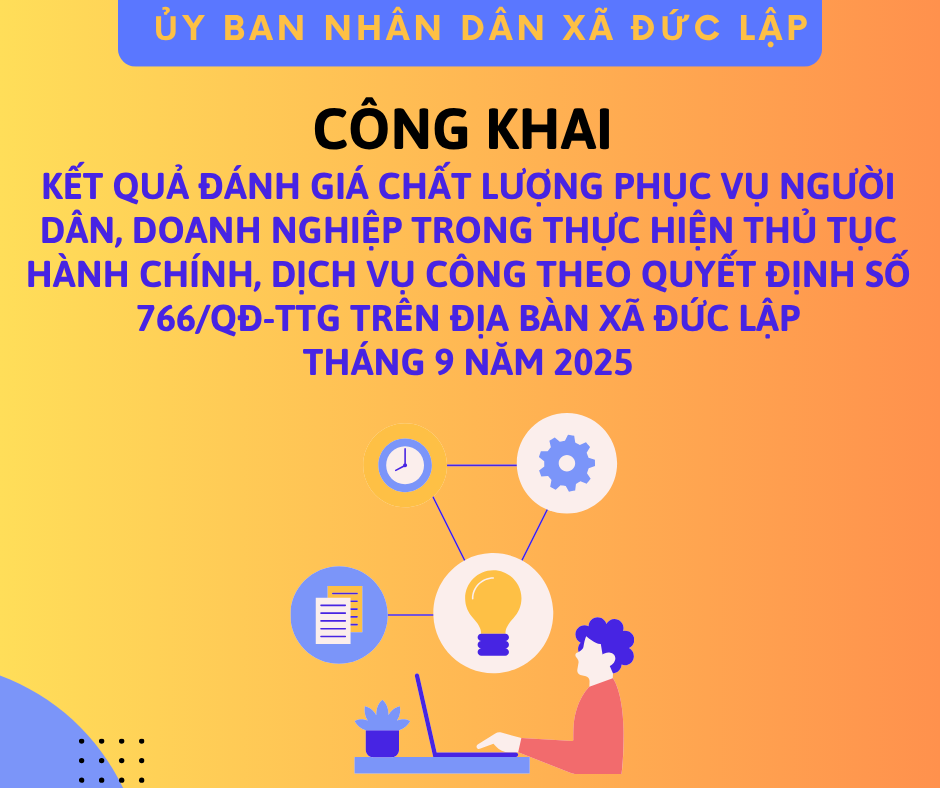 CÔNG KHAI KẾT QUẢ ĐÁNH GIÁ CHẤT LƯỢNG PHỤC VỤ NGƯÒI DÂN, DOANH NGHIỆP TRONG THỰC HIỆN THỦ TỤC HÀNH CHÍNH, DỊCH VỤ CÔNG THEO QUYẾT ĐỊNH SỐ 766/QĐ-TTG TRÊN ĐỊA BÀN XÃ ĐỨC LẬP THÁNG 9 NĂM 2025