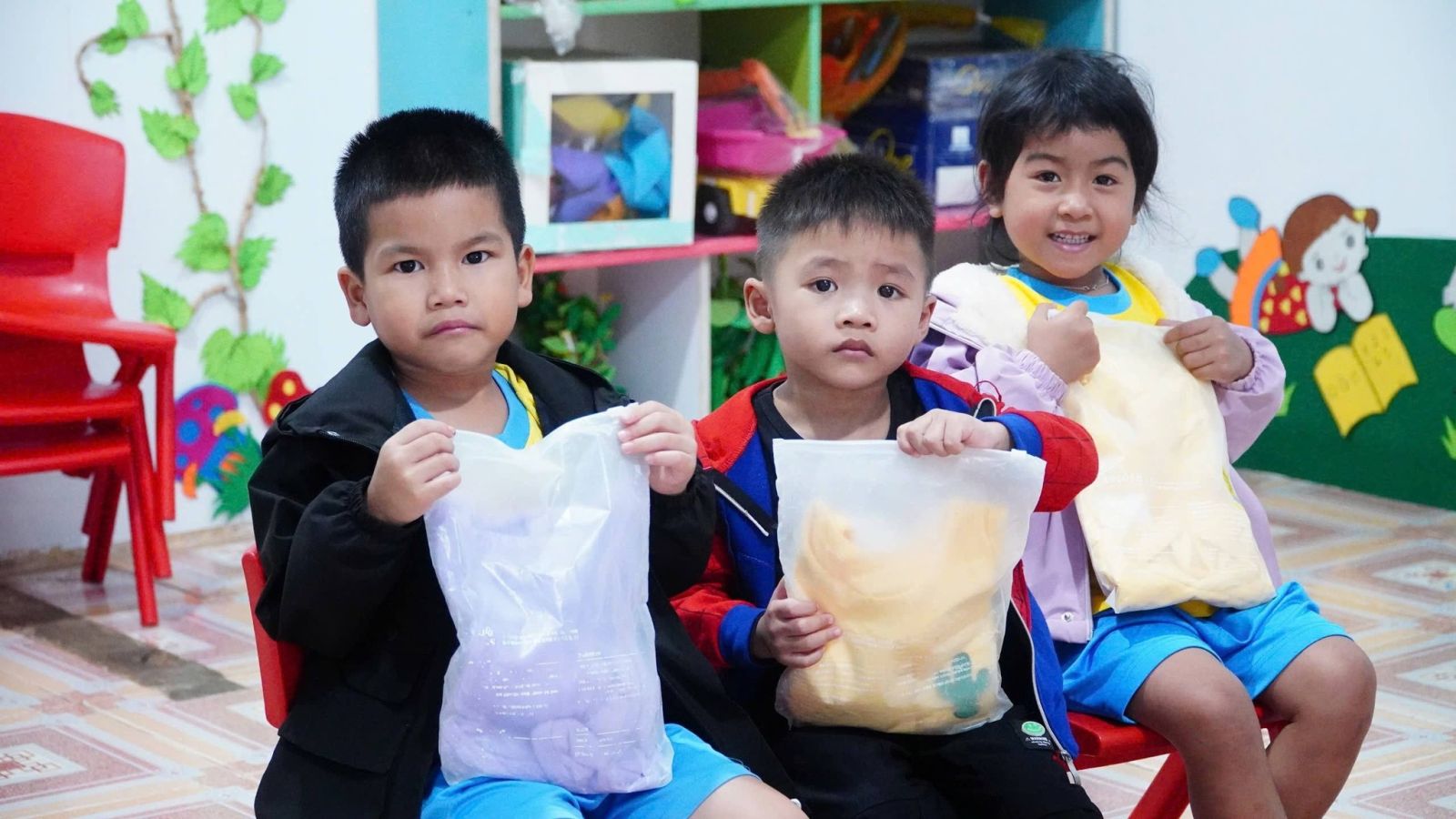 Những chiếc áo ấm, bộ đồ mới giúp các em học sinh giảm bớt khó khăn, đảm bảo sức khoẻ khi đi học giữa mùa rét Tây Nguyên.