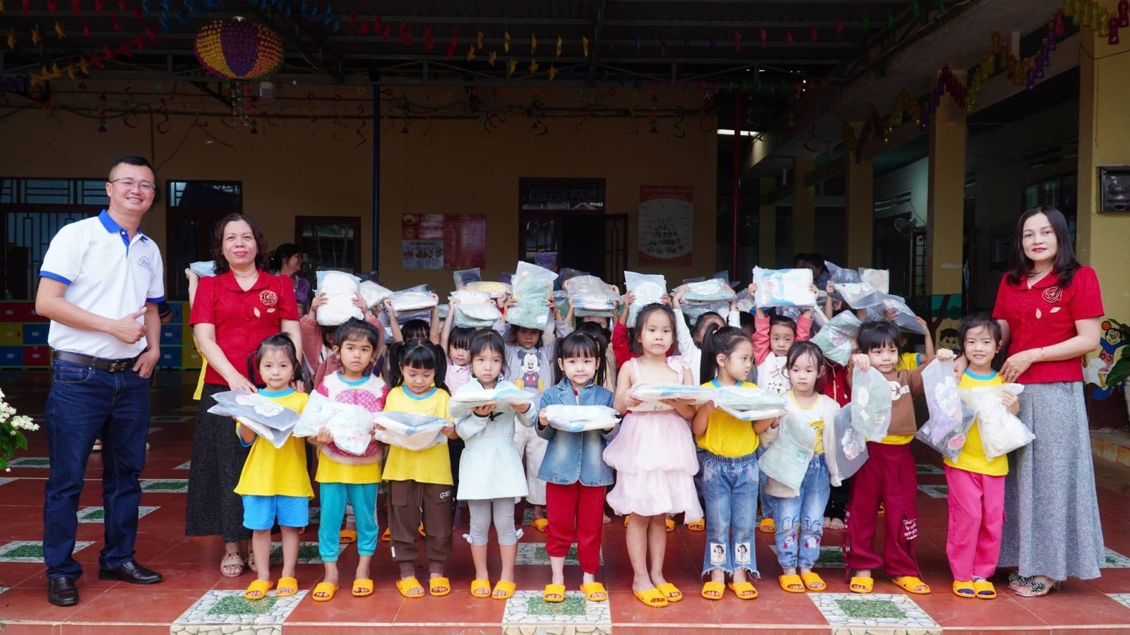 Chiều ngày 25/12, Công ty TNHH phần mềm Trường Học Việt đã trao tặng 387 bộ đồ mới cho các em nhỏ tại điểm Phân hiệu trường Mẫu giáo Mầm Non xã Đức Lập.