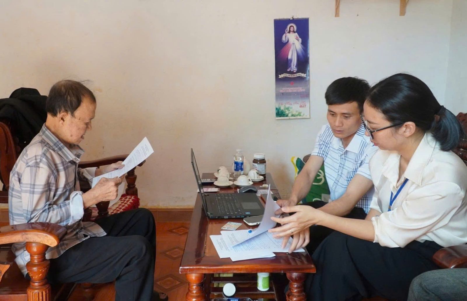 Công chức Trung tâm Phục vụ HCC xã trực tiếp hướng dẫn cho người cao tuổi thực hiện thủ tục hành chính tại nhà