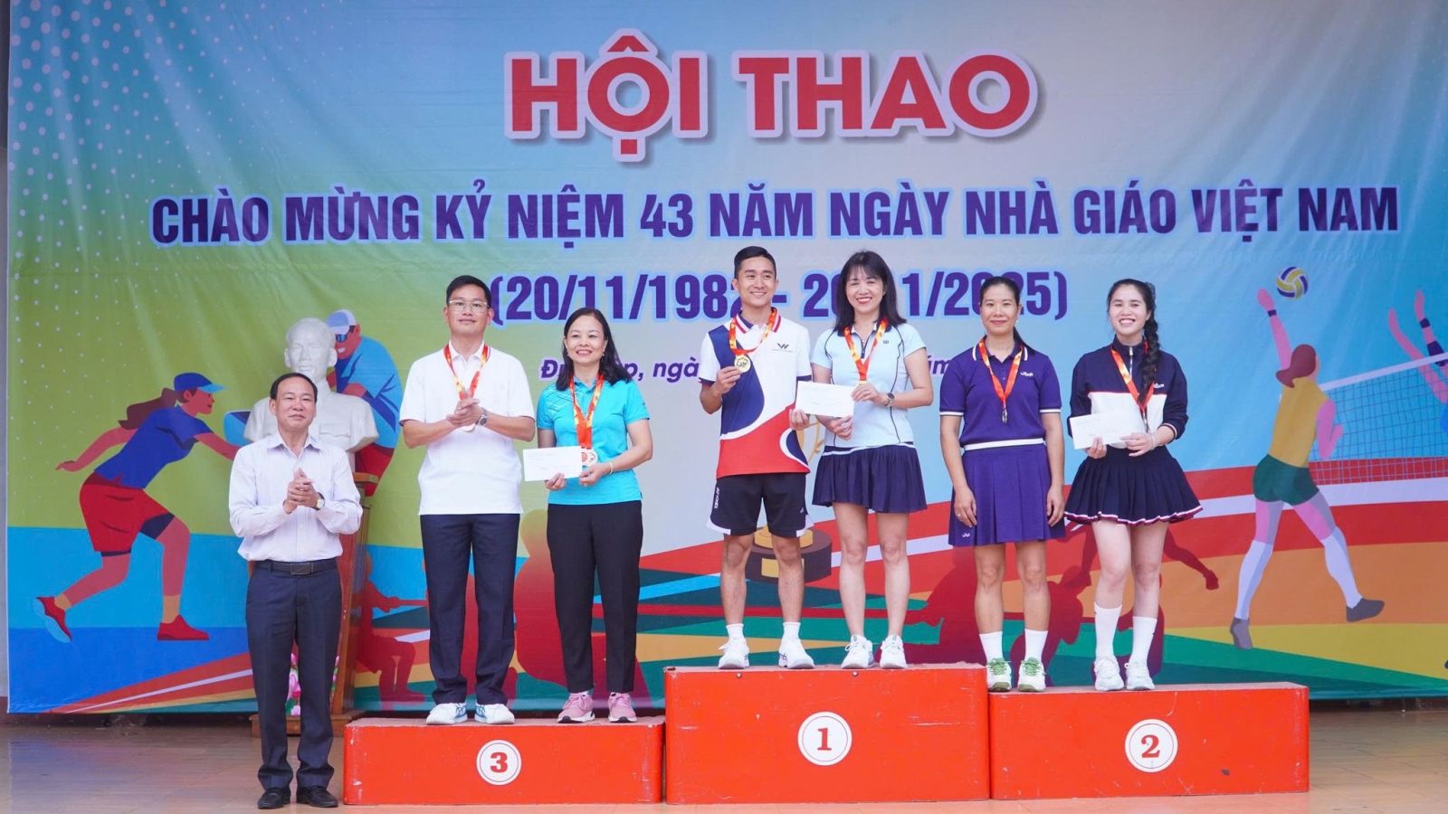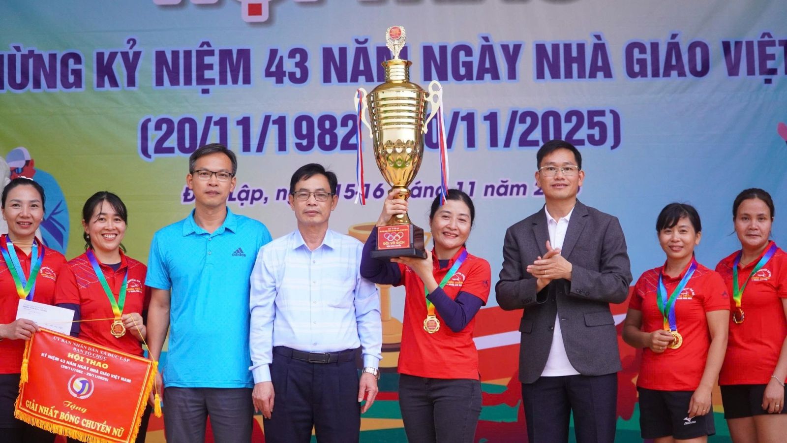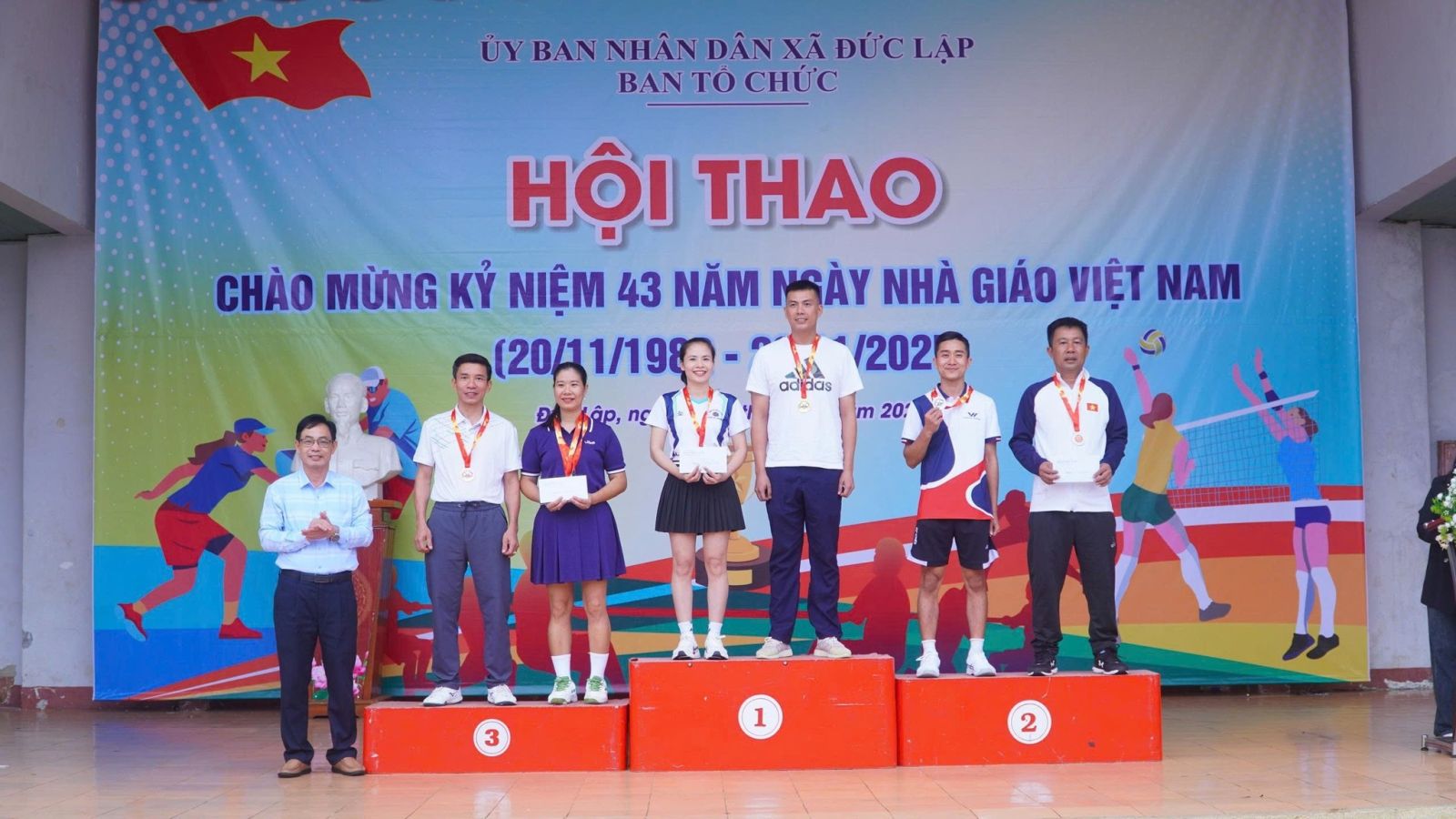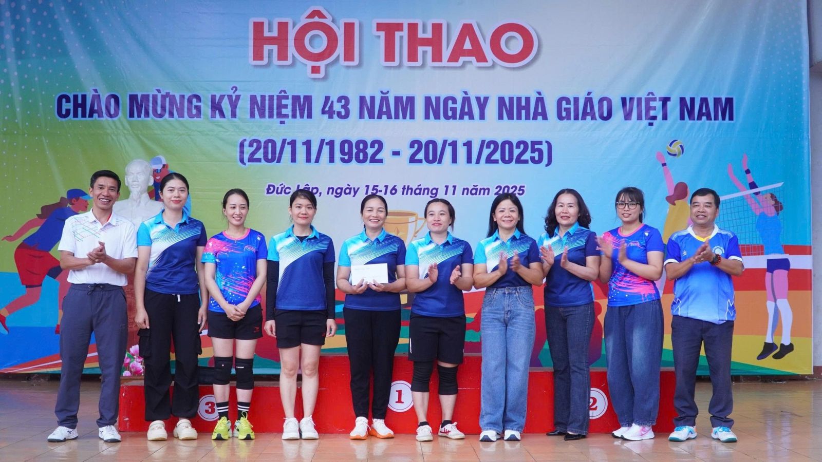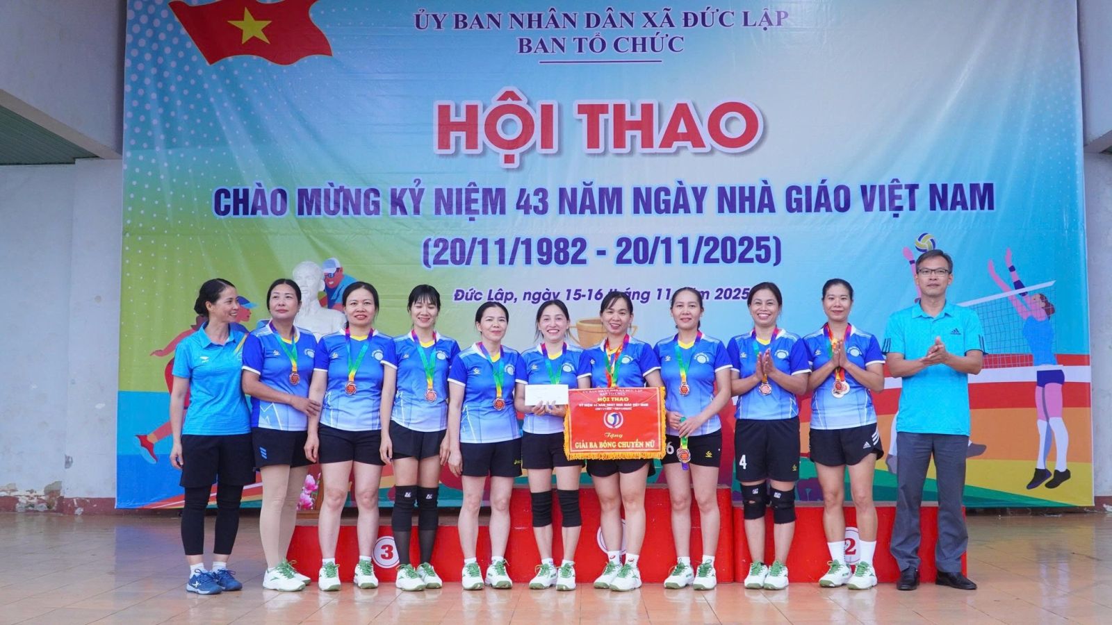 Sau 2 ngày thi đấu, hội thao chào mừng 43 năm ngày nhà giáo Việt Nam 20/11/1982 -20/11/2025 đã tìm ra được chủ nhân của các ngôi vị cao nhất. Dự bế mạc, trao giải có đồng chí Đồng chí Nguyễn Xuân Lương – UVBTV, PCT HĐND xã; Đồng chí Đinh Thanh Hải - UVBTV, PCT UBND Xã.