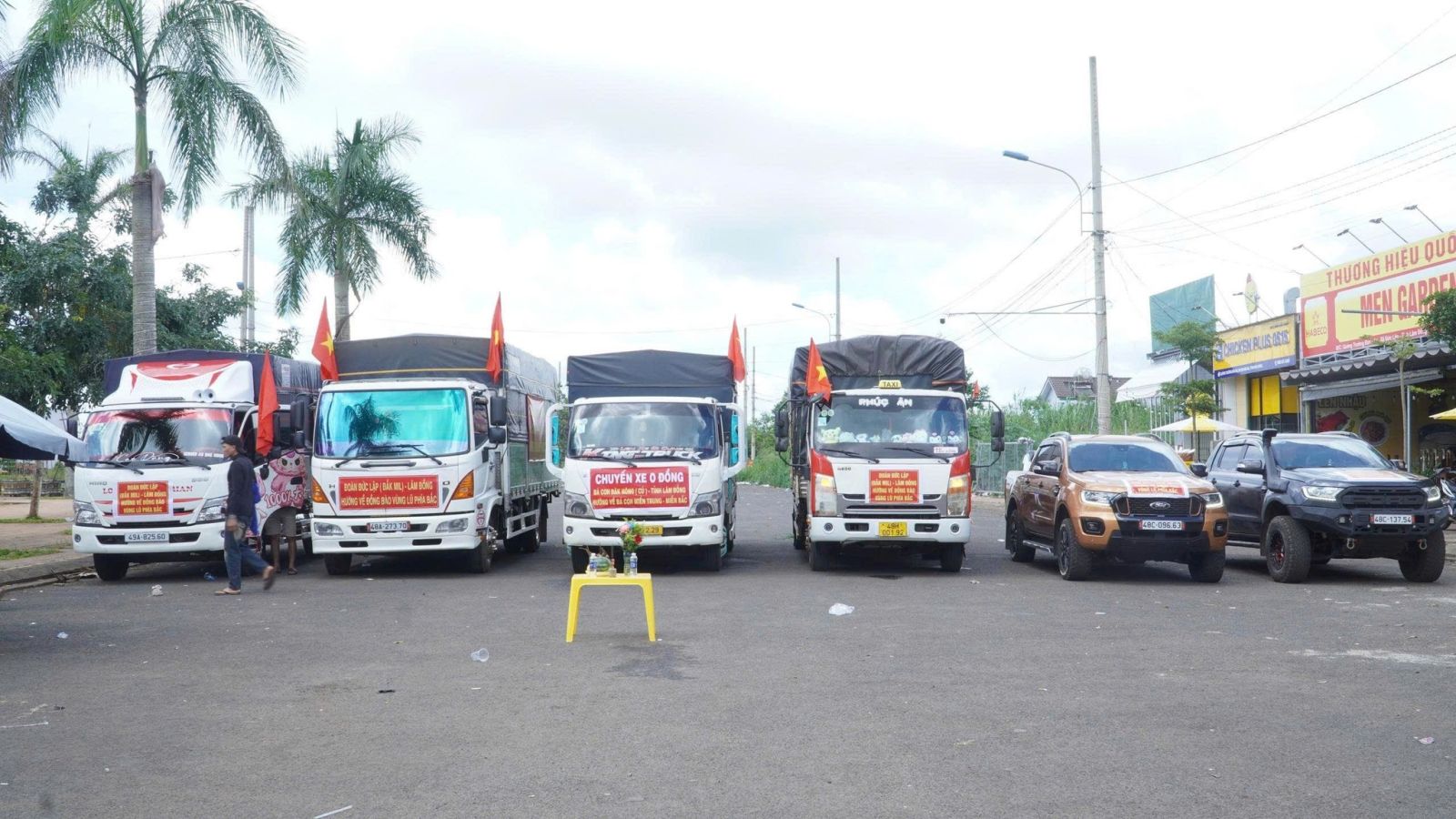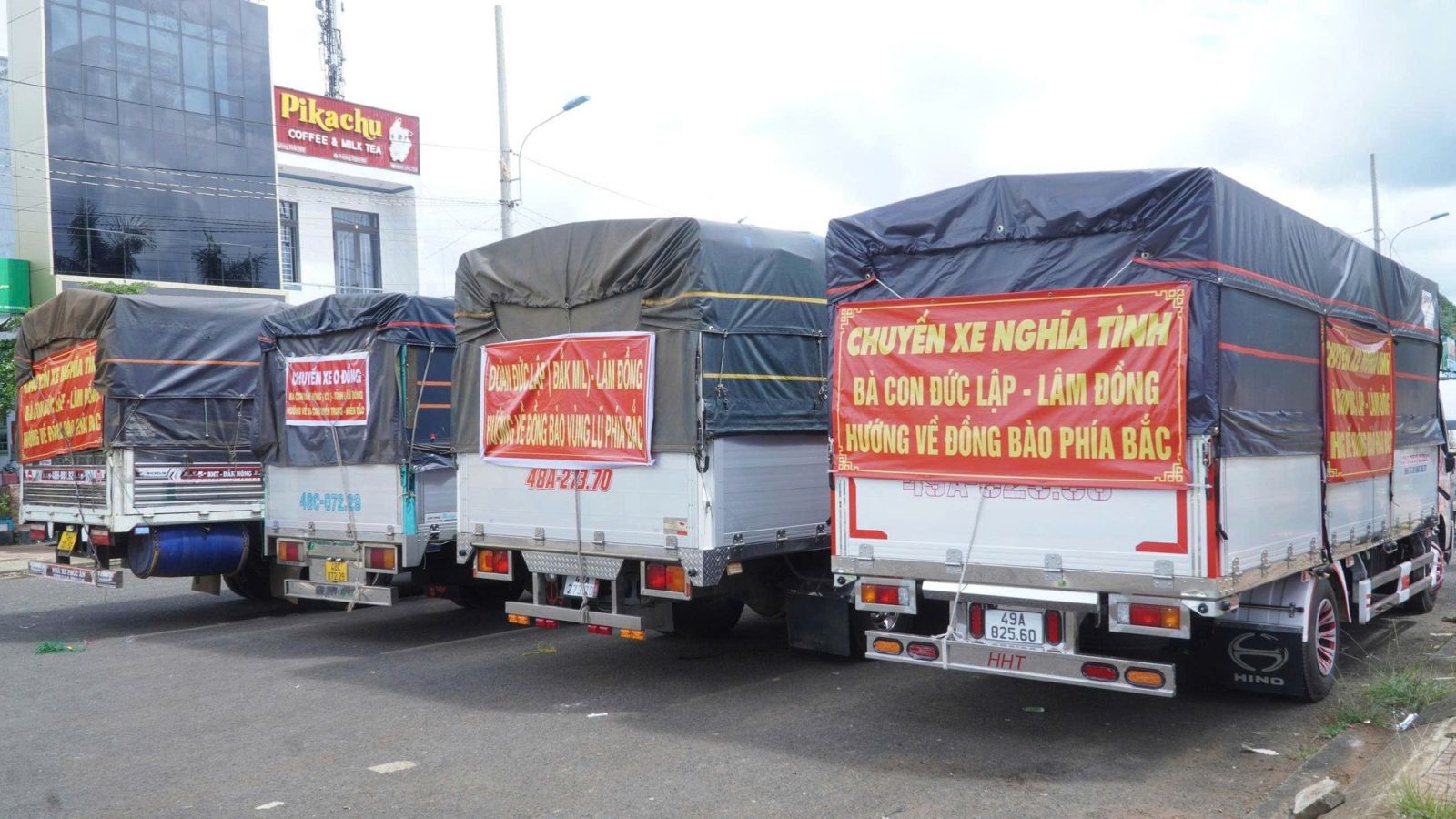 Sau 4 ngày quyên góp, chiều ngày 12/10, đoàn cứu trợ gồm 4 xe tải và 2 xe bán tải chất đầy hàng hoá của Nhân dân xã Đức Lập và các xã của huyện Đắk Mil cũ đã lên đường ra phía bắc