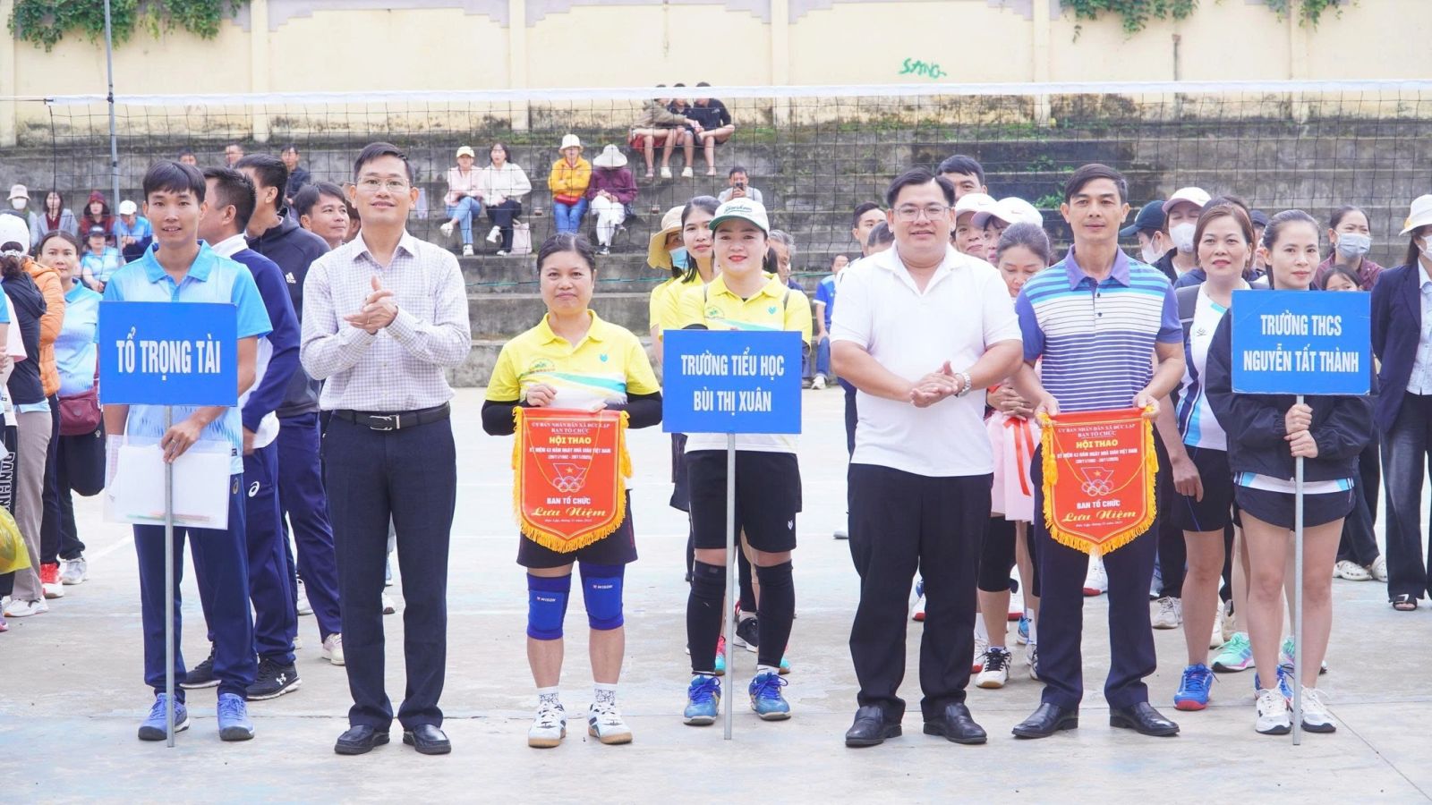 Cùng hơn 200 vận động viên là lãnh đạo, thầy giáo, cô giáo các trường tiểu học, THCS trên địa bàn toàn xã.
