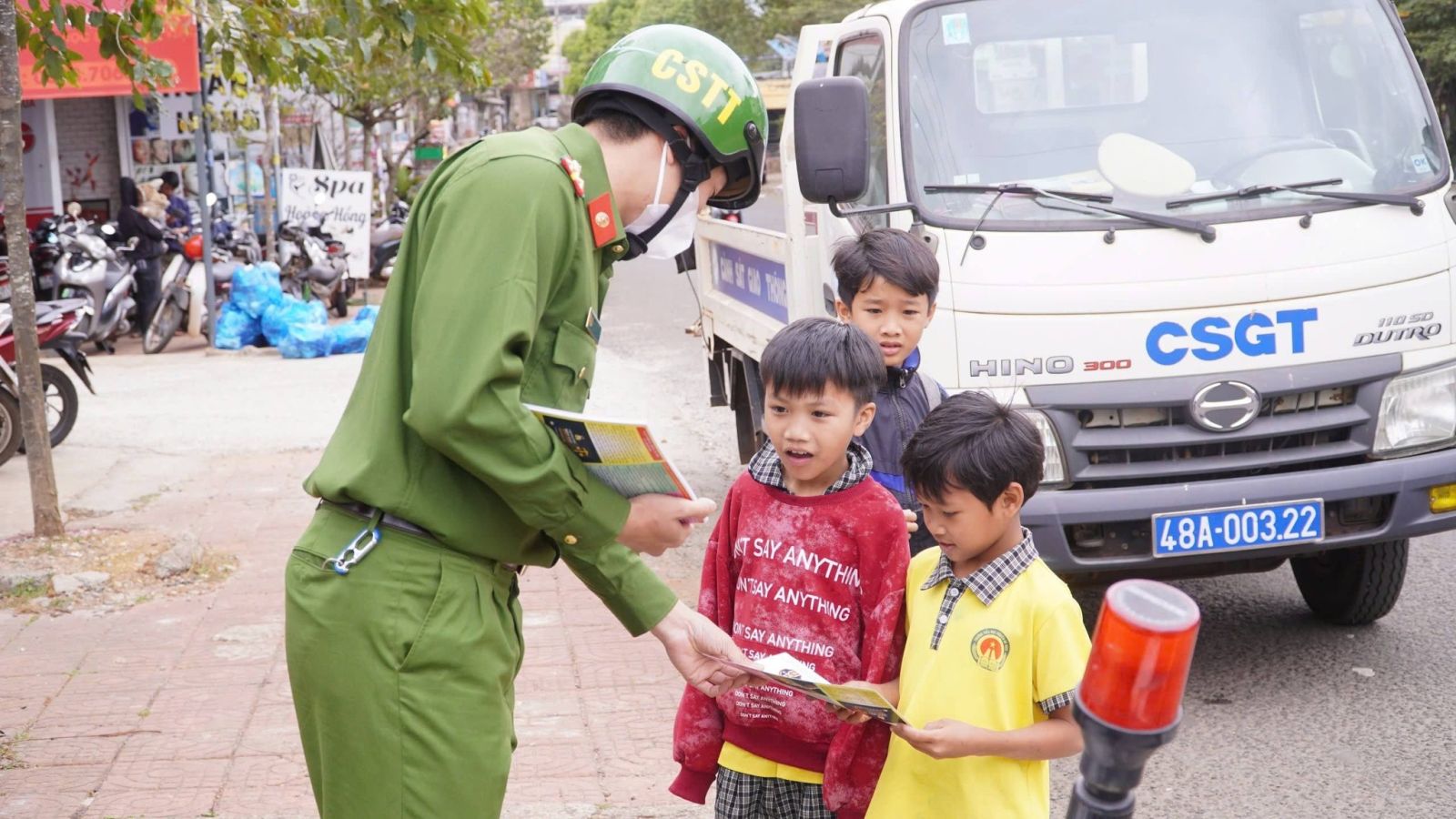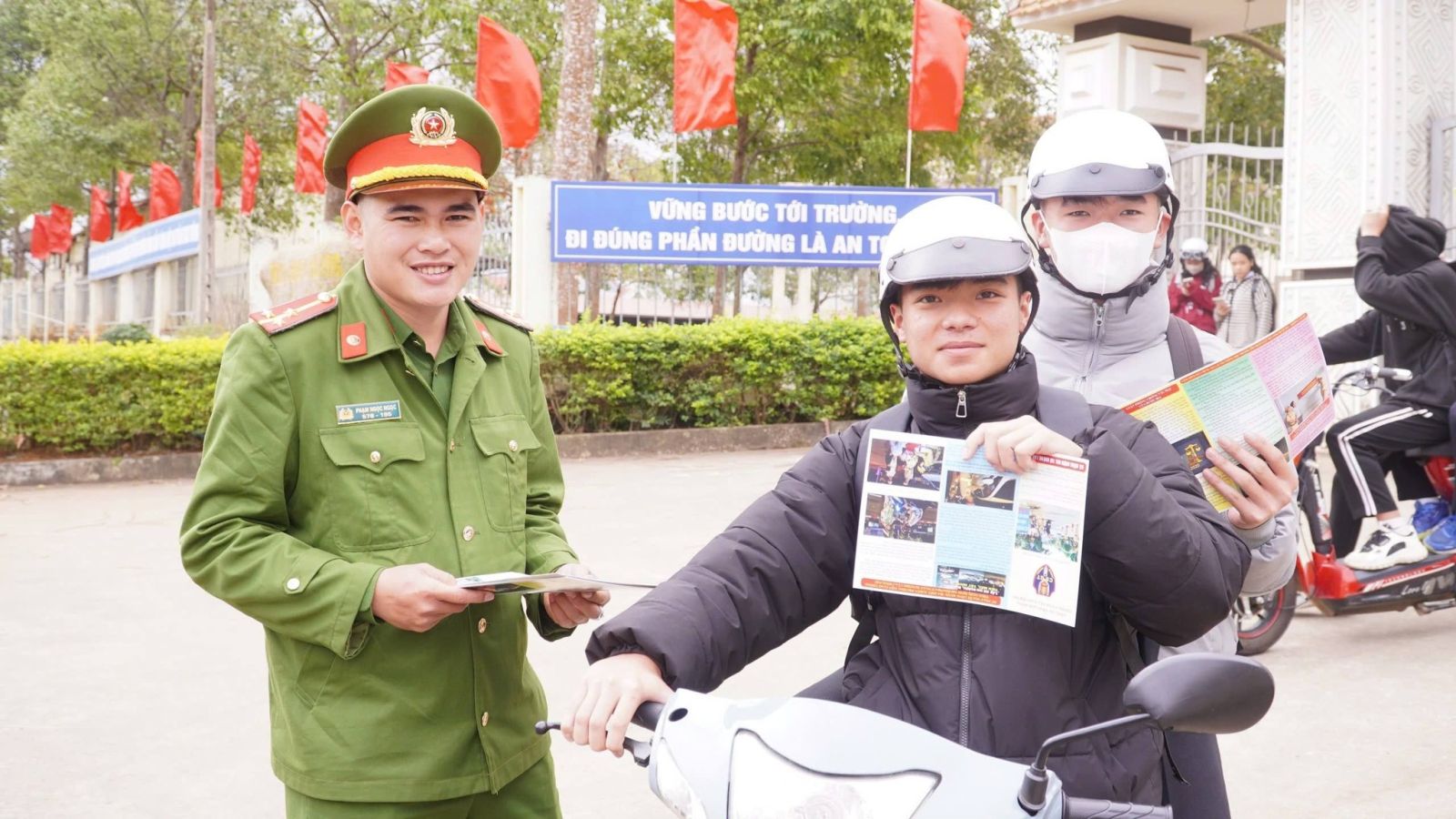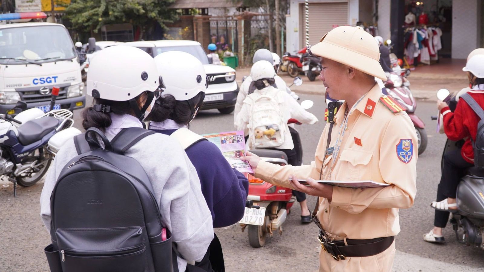 Đặc thù của khu vực Đức Lập là rất đông số lượng học sinh sử dụng xe máy, xe máy điện để đến trường. Mỗi dịp lễ tết, áp lực giao thông lại càng tăng cao tại các tuyến đường có nhiều trường học. Với phương châm “ Giáo dục từ gốc rễ” ngoài tuyên truyền trực quan tại các giờ hoạt động ngoại khoá của nhà trường, các đồng chí Tổ cảnh sát giao thông Đắk Mil – Đội cảnh sát giao thông đường bộ số 4 cùng Công an xã Đức Lập thường xuyên trực tiếp nhắc nhở, tuyên truyền tại các điểm nóng như cổng trường. Hơn 1000 trường hợp các em học sinh được các đồng chí Tổ cảnh sát giao thông Đắk Mil – Đội cảnh sát giao thông đường bộ số 4 cùng Công an xã Đức Lập tuyên truyền, phát tờ rơi, nhắc nhở các lỗi vi phạm như thiếu gương chiếu hậu, sử dụng điện thoại khi tham gia giao thông..jpg)